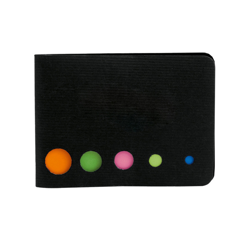 Zestaw składa się z 100 karteczek samoprzylepnych o wymiarach 1,5 x 5 cm, dostępnych w pięciu różnych kolorach: beżowy, biały, czarny oraz dwa inne, ułatwiające kategoryzację notatek. Karteczki umieszczone są w eleganckim opakowaniu wykonanym z kartonu z recyklingu, co sprawia, że jest to idealny wybór dla tych, którzy cenią sobie ekologiczne rozwiązania.